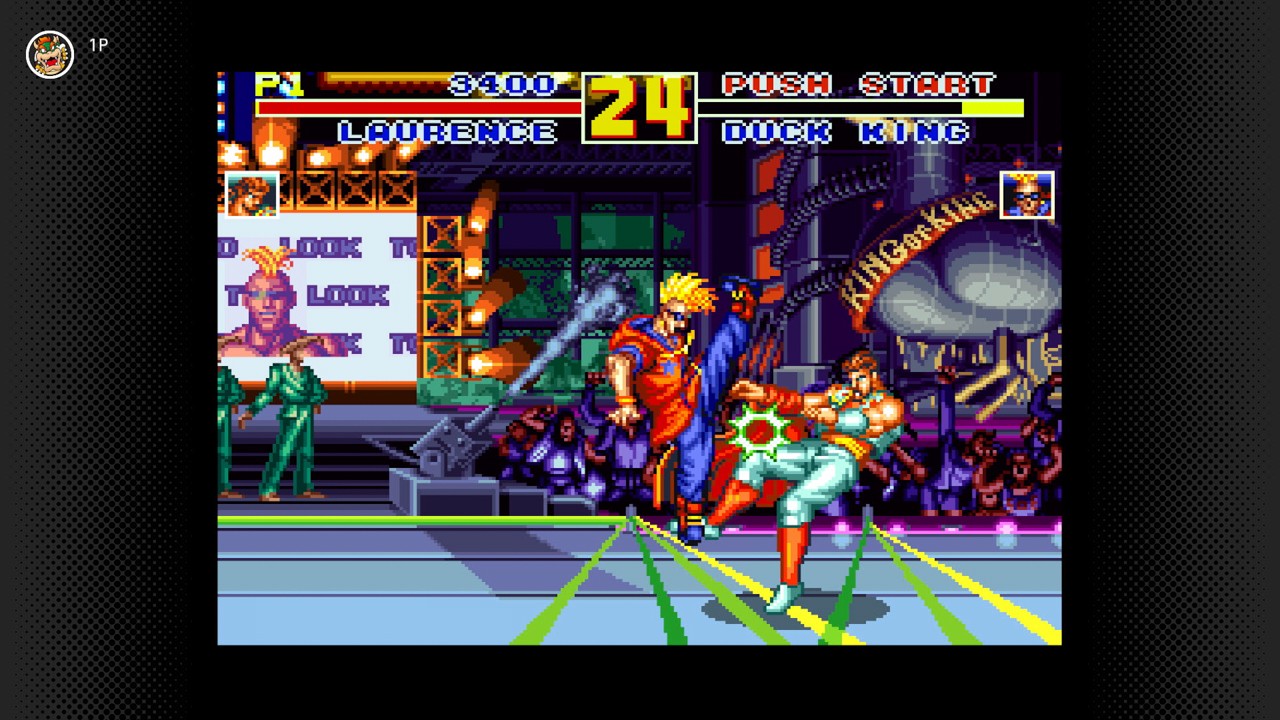 餓狼シリーズから選りすぐりのファイター達15人が集まり、史上最大の武闘会で熱い戦いを繰り広げます。条件を満たすと、『龍虎の拳』のリョウ・サカザキが登場します。