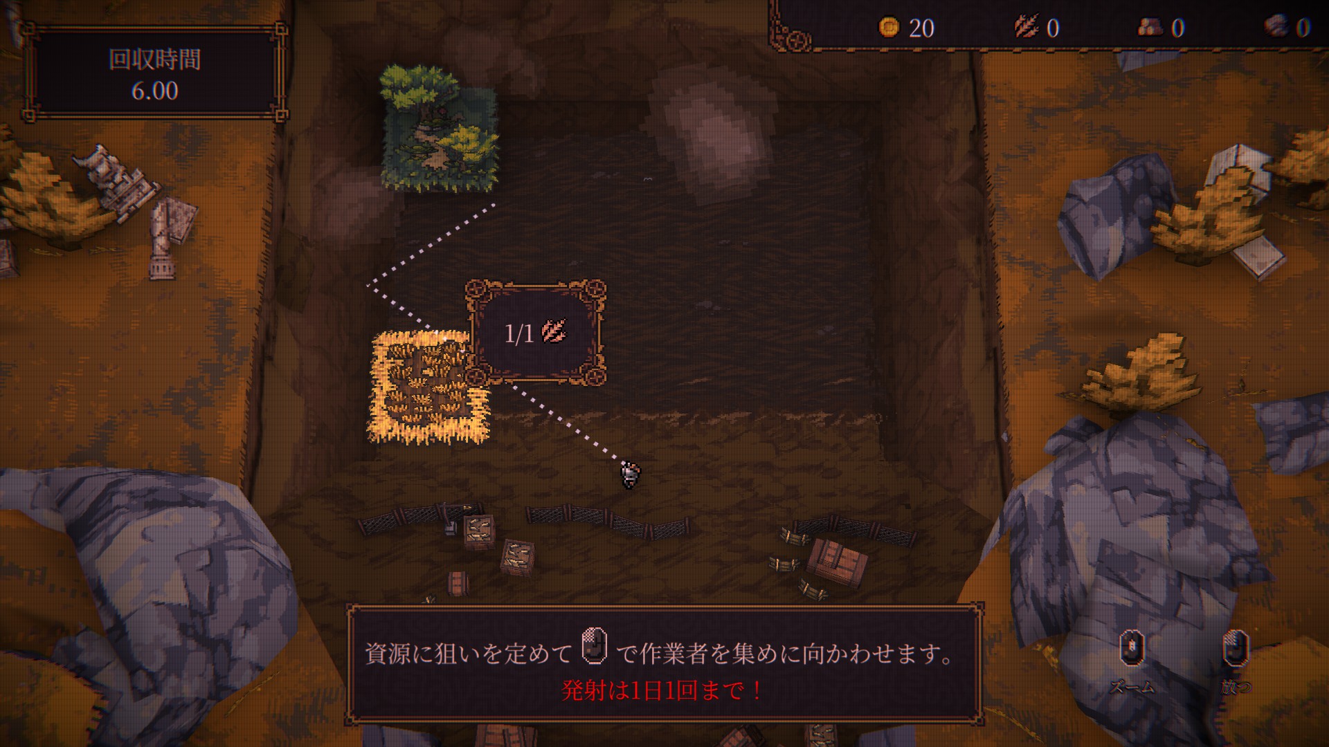どう配置すれば資源を効率よく回収しつつ建築を早く進められるか、あれこれ考えてみるのもよいでしょう。再配置は自由ですし、撤去しても設置やレベルアップにかかった分の資源はそのまま返ってきます。