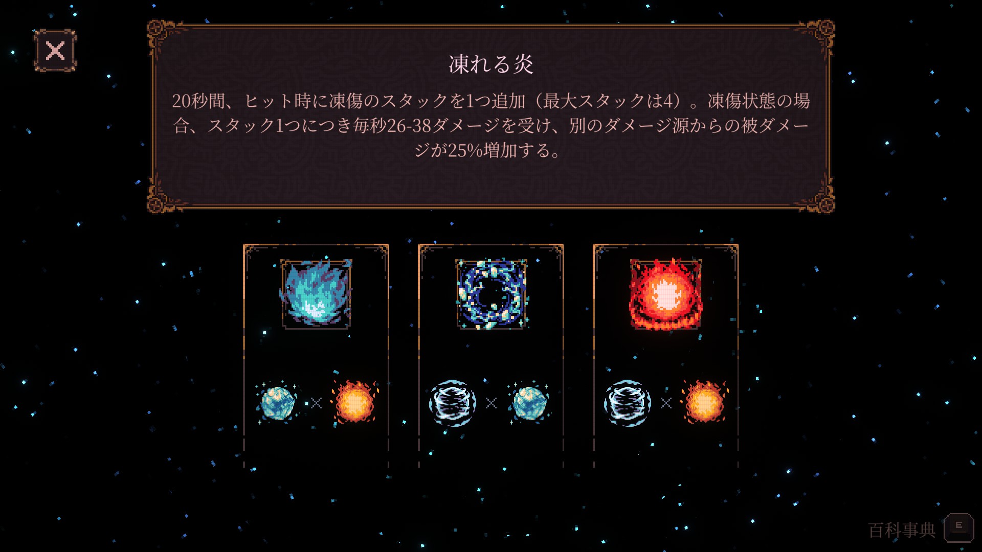 凍れるトゲ | 凍結している敵が冷気を放ち、付近の敵にダメージを与える |